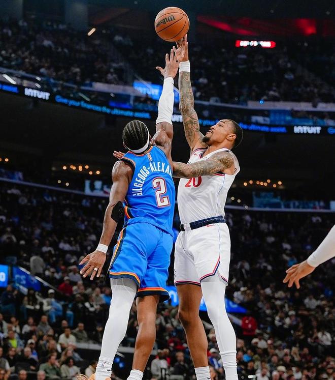 乔随后命中一记中投,哈登的三分球未能命中,亚历山大在三分线外造成犯规,三罚全中,祖巴茨则在篮下扣篮得分。至此,上半场比赛结束,快船队以57 - 56的比分仅领先雷霆队1分。