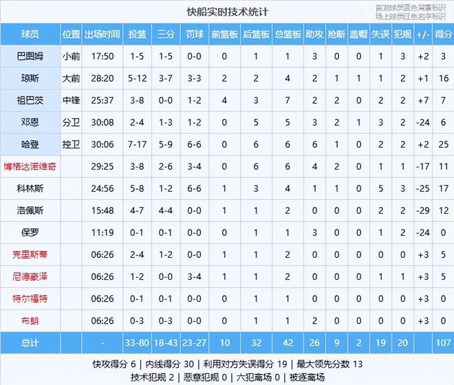 快船数据(主队):哈登25分6板6助、科林斯17分4板1助、琼斯16分4板2助、洛佩斯12分2板、博格达诺维奇11分6板4助2断、祖巴茨7分7板2助2断、邓恩6分5板3助2断、尼德豪泽5分2板、克里斯蒂5分2板、巴图姆3分1板3助、保罗1板3助、布朗1板2助、特尔福特1板