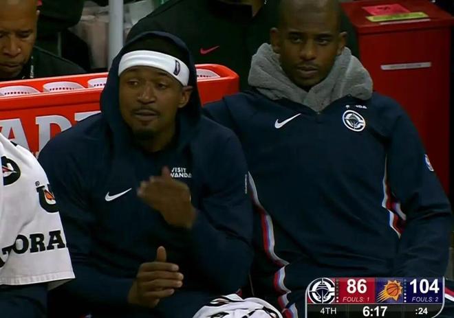 布克看着今天第一次出战的风雪哥