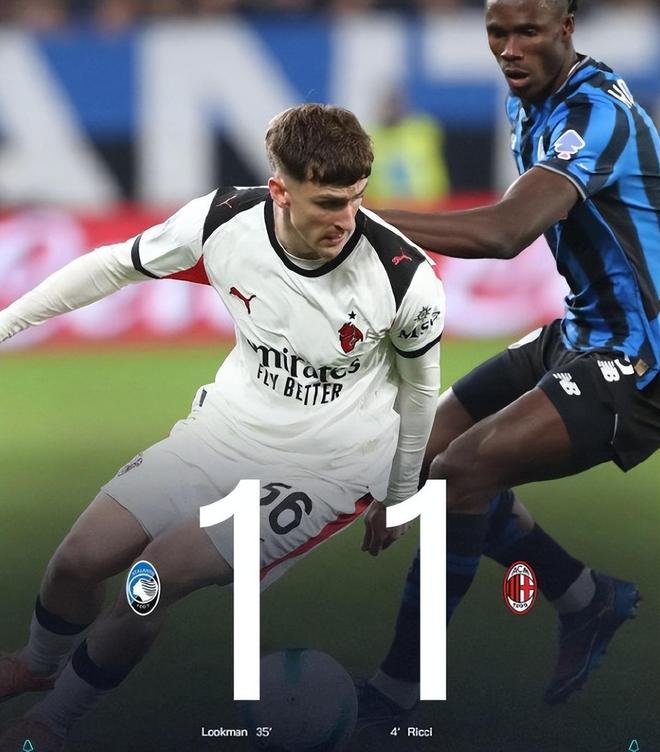 回看这场比赛的这两粒进球,第4分钟米兰获得右侧角球机会,球员开到禁区被对手解围,弧顶位置里奇得球后迎球直接抽射得手,这是球员个人能力的体现,也是对手解围球没踢远给出的良机。遗憾的是随后米兰再也没能洞穿对手的球门,这也是进攻端无力的缩影。第35分钟亚特兰大前场连续的短传配合,帕萨利奇得球后选择直塞给到禁区左侧卢克曼,后者跟进小角度射门将比分扳平。